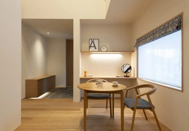 ディスプレイ用のレンタル家具の場合はOK、お施主様購入品の場合はNGが基本だと思います。もしNGでも、家具のそばで腰を落とし座ったつもりの目線や姿勢を試すだけも、きっと気づきがあります。目線の先に借景が現れたり、畳に座ると妙に落ち着いたり、家族の顔や様子の見え方も変わります。
