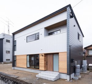 単世帯【南砺市(新築) 南砺市産杉板張りの家】若いご夫婦が暮らす敷地内同居スタイルの約38坪のお住まいです。板張りがアクセントになったBOX型の外観は、金属サイディングと耐候性のある杉(南砺市産)とすることでメンテナンスもしやすくしました。室内はナチュラルカラーでまとめたシンプルなデザイン。癒しのタタミス […]